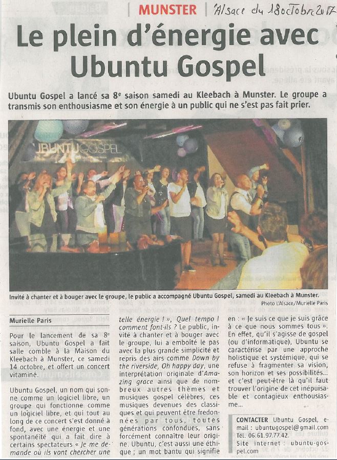 ♦ Concert UBUNTU du 14 octobre 2017 : Article de presse + Photo 1 + Photo 2 + Photo 3